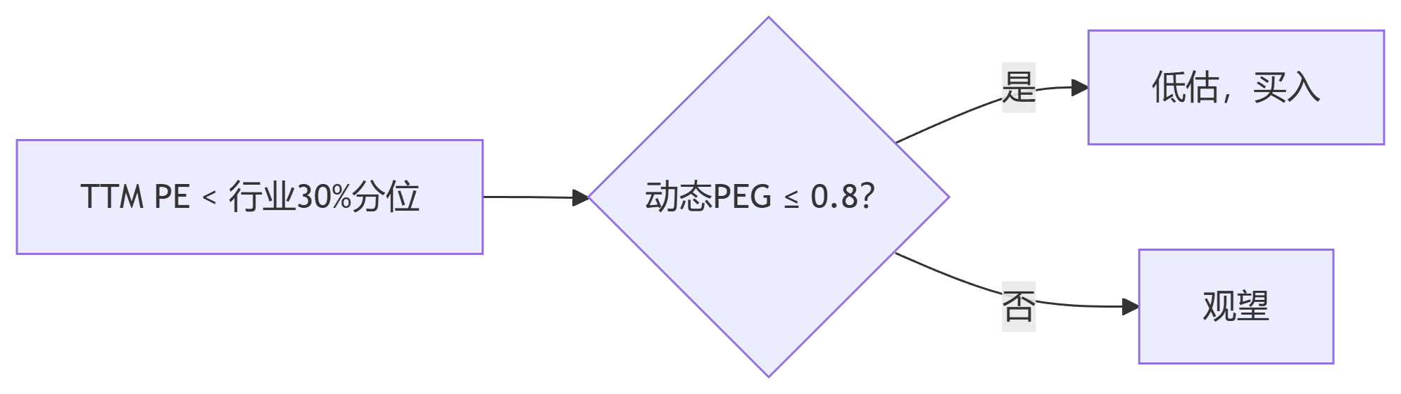 要求:动态PE ≤ 行业平均 且 PEG = 动态PE/预测增速 ≤ 1