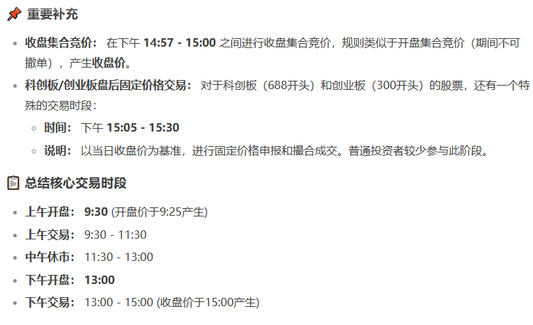 以下是A股市场的标准交易时间安排: