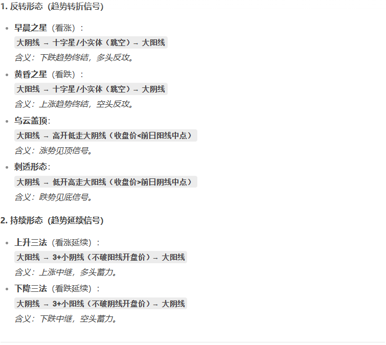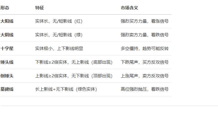 - 1.孤立看形态:忽略趋势、成交量、市场环境的K线是危险的。