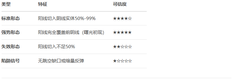 - 2.阳线实体深度:收盘价需刺入前日阴线实体 50%以上(越接近顶部反转力度越强)。